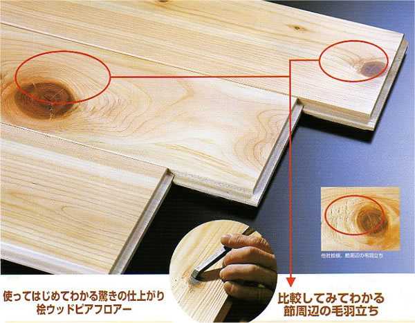 まったく節の無い通直な木理と、密で美しいイ木肌があなたの心をなごませるでしょう。 |