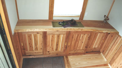 無垢材を使用した下駄箱は防臭・除湿効果で靴の保管にも最適です。